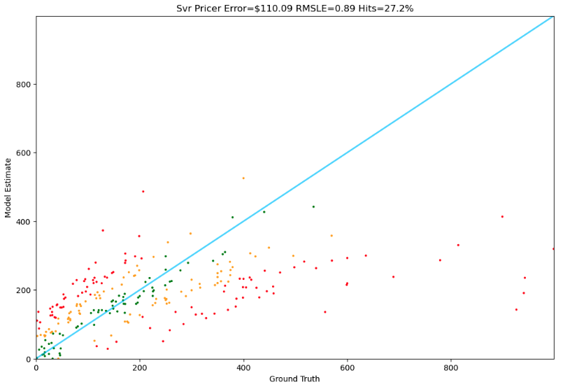 # - svr_pricer 함수(Word2Vec 벡터 기반 SVM 회귀 예측)를 테스트셋에 적용