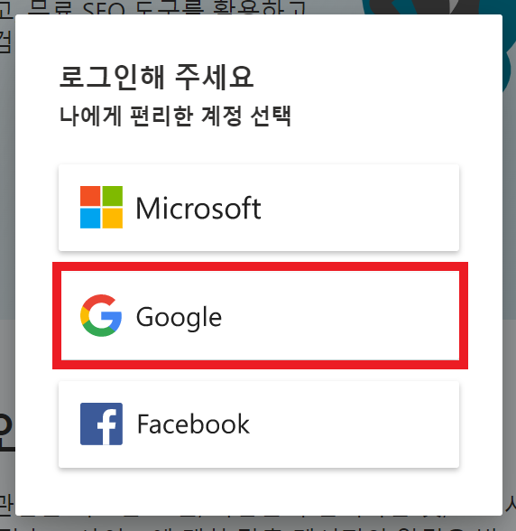 시작하기를 클릭하면 로그인을 해야 하는데, 저는 구글 계정으로 로그인했습니다.