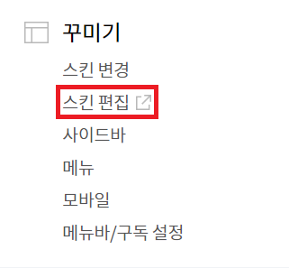 꾸미기에 있는 스킨 편집을 클릭합니다.