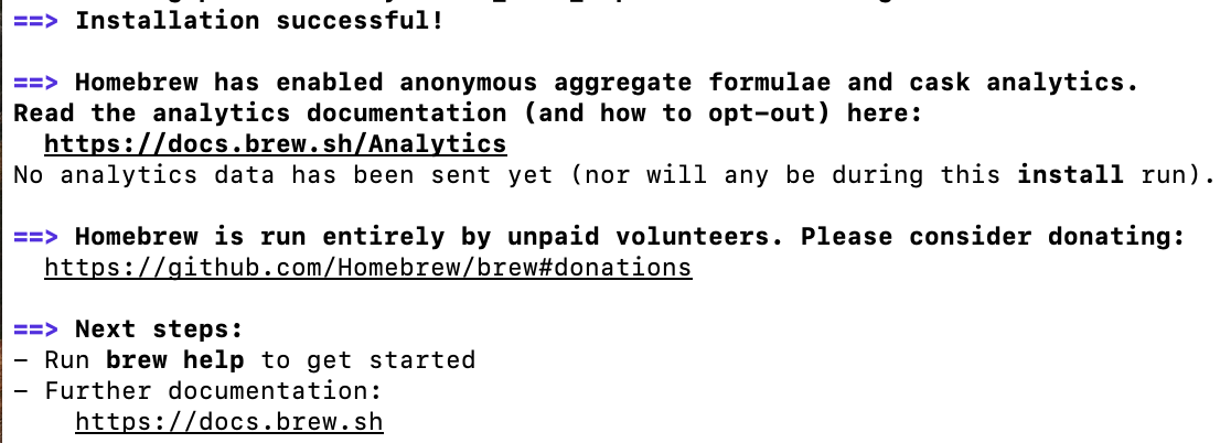 다음 명령어를 실행해서 Homebrew 설치가 잘 됐는지 버전을 확인해봅니다.