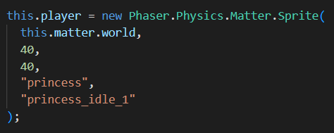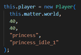 요청된 생성자 안에서 super를 호출하면서 scene.matter.world와 x좌표, y좌표, texture 그리고 frame을 참조하기 위해서 아래와 같이 코드를 작성합니다.