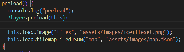이제 다시 MainScene.js 파일로 돌아가서 필요한 작업을 수행하기 위해 preload()에 다음의 코드를 작성해 줍니다.