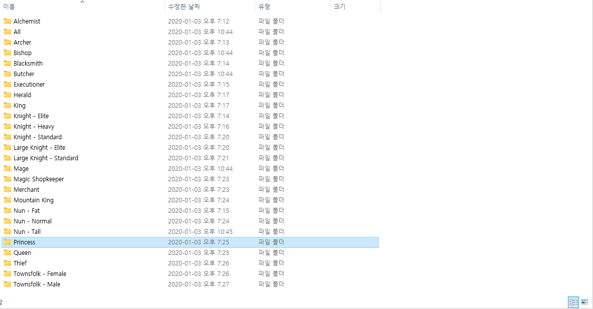 이 중 마음에 드는 캐릭터가 있는 폴더를 골라둡니다.(저는 Princess로 골랐습니다.)