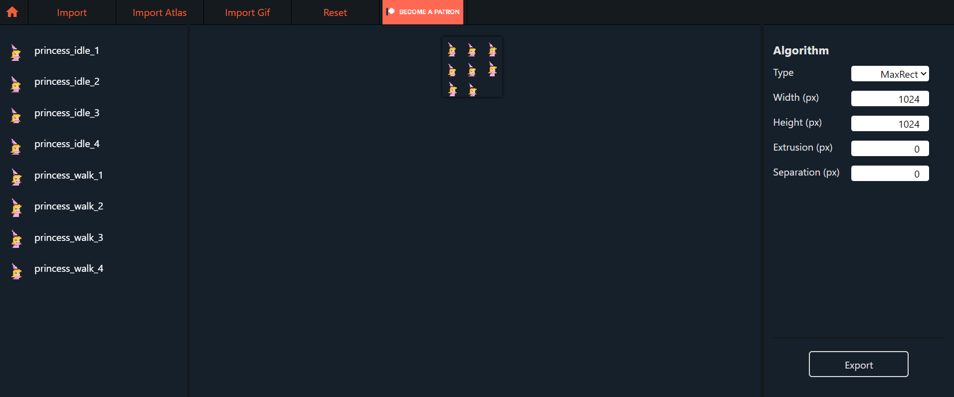 순서대로 프레임을 드래그하여 You can drop an image here! 에 넣어줍니다.