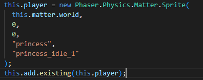 이후에 create()의 new Phaser.Physics.Matter.Sprite에 몇 가지 추가 매개 변수를 작성합니다.