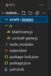 assets\images 폴더에 PNG와 JSON 파일을 넣어주고 난 뒤 MainScene.js 파일을 엽니다.