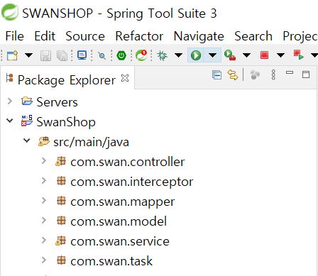- com.swan.service: Service 패키지이며, mapper와 Controller 사이를 연결해주는 역할을 함.