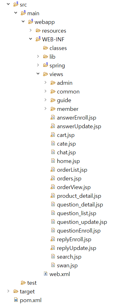 제 프로젝트의 메인 페이지 이름은 swan.jsp입니다. swan.jsp를 src/main/webapp/WEB-INF/views 경로에 생성합니다.