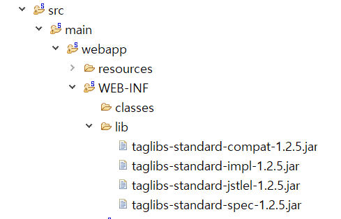 2) src/main/webapp/WEB-INF/lib 폴더에 JSTL 사용을 위한 jar 파일 삽입
