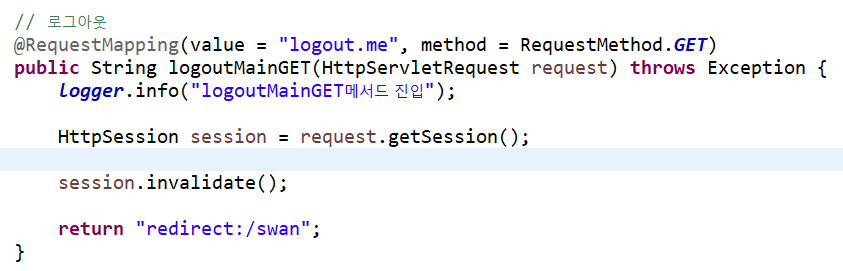 logger.info("logoutMainGET메서드 진입");