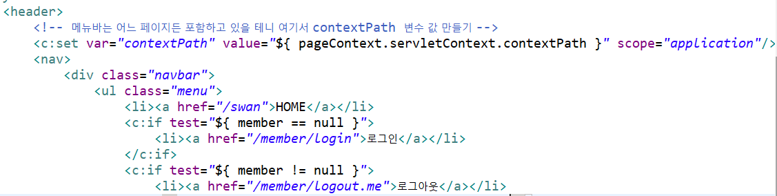 로그인 성공 시 등장하는 class 속성이 "menu"인 ul태그 안에 li 태그 안에 a태그를 추가합니다.