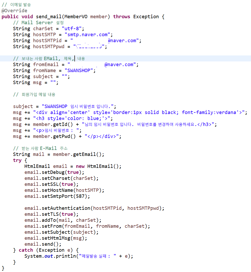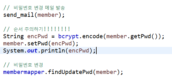 member.setPwd(pwd); // 임시 비밀번호 담기