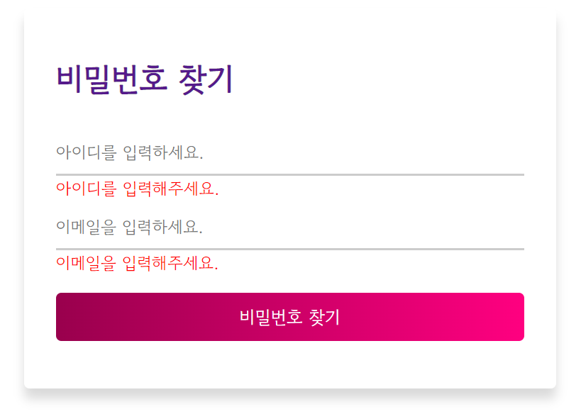 마지막으로 find_pwd_form.jsp에 아이디와 이메일 유효성 검사를 추가해줍니다.