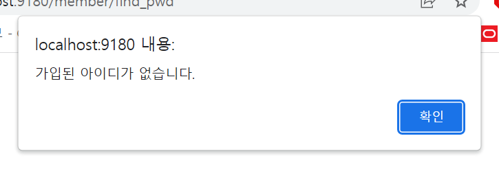 DB에 저장된 아이디와 이메일을 입력했을 시