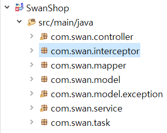 Interceptor 클래스를 따로 관리하기 위해서 com.swan.interceptor 패키지를 새로 만들었습니다.