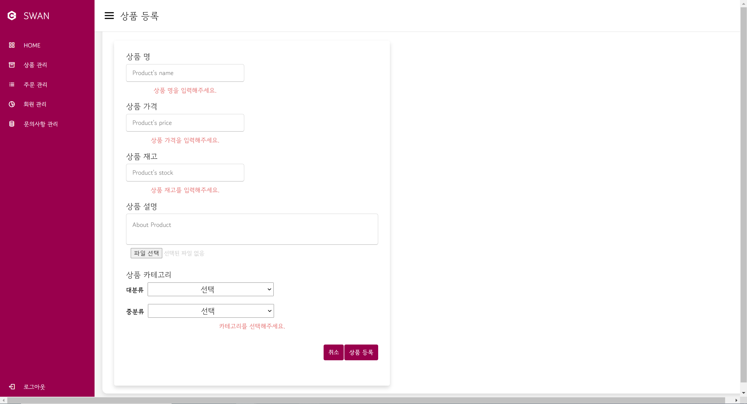 각 항목을 빈 공란인지 확인하는 if문을 코드를 작성합니다.