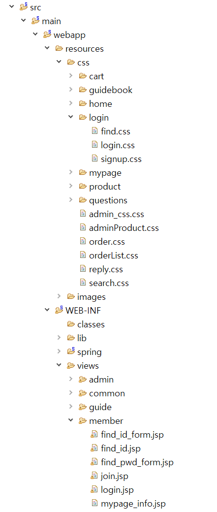 css 또한 src/main/webapp/resources/css 경로에 login 폴더를 추가한 후 login.css, signup.css를 추가하였습니다.
