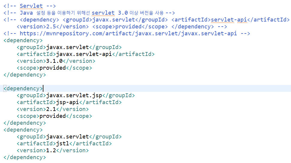 스프링 MVC 프로젝트는 servlet 라이브러리를 기본적으로 사용하고 있습니다.