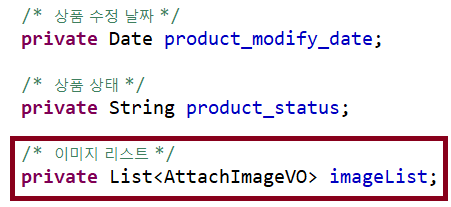 List 요소로 AttachImageVO 타입만 가질 수 있는 List 타입의 변수를 선언합니다.