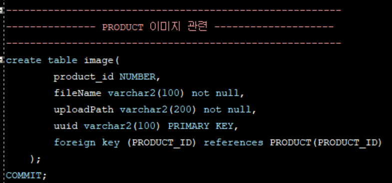 DB에 아래의 명령을 통해 상품 이미지 테이블(IMAGE)을 생성합니다.