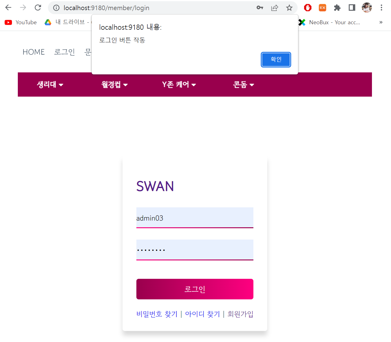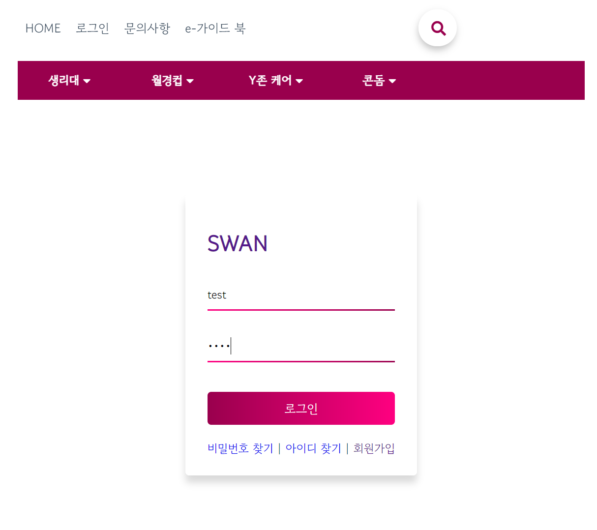 로그인 페이지에서 항목란에 테스트 데이터(아무거나)를 입력한 후 로그인 버튼을 누릅니다.