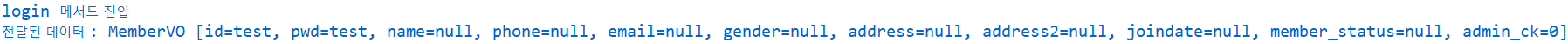 lvo 값은 아이디, 비밀번호가 존재할 경우, 해당 회원 데이터가 담긴 MemberVO 객체가 저장되게 됩니다.