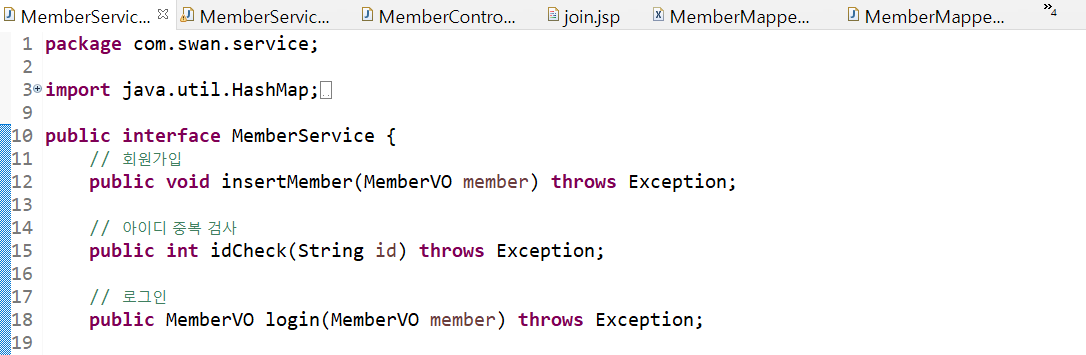 3. MemberService.java 인터페이스, 클래스 작성