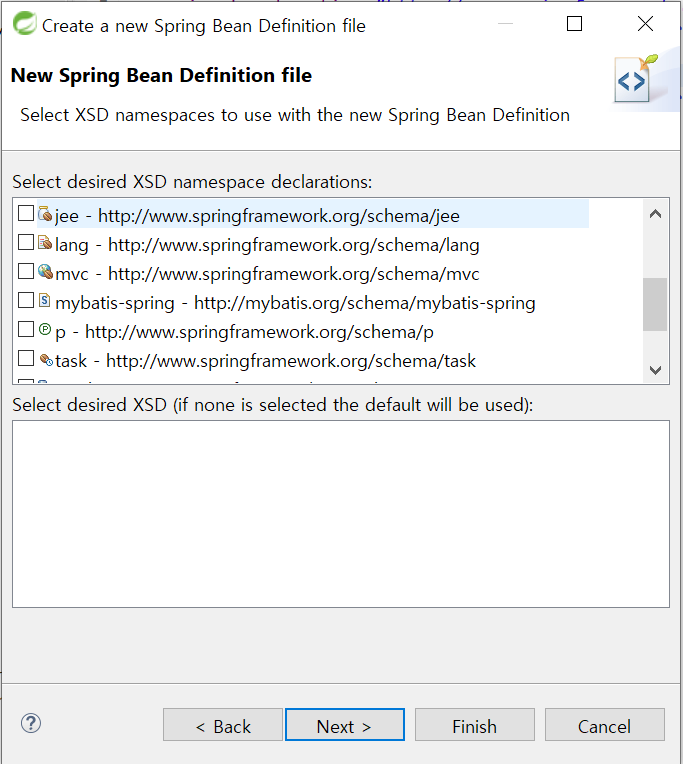 src/main/webapp/WEB-INF/spring 우클릭 → Spring Bean Definition file 생성