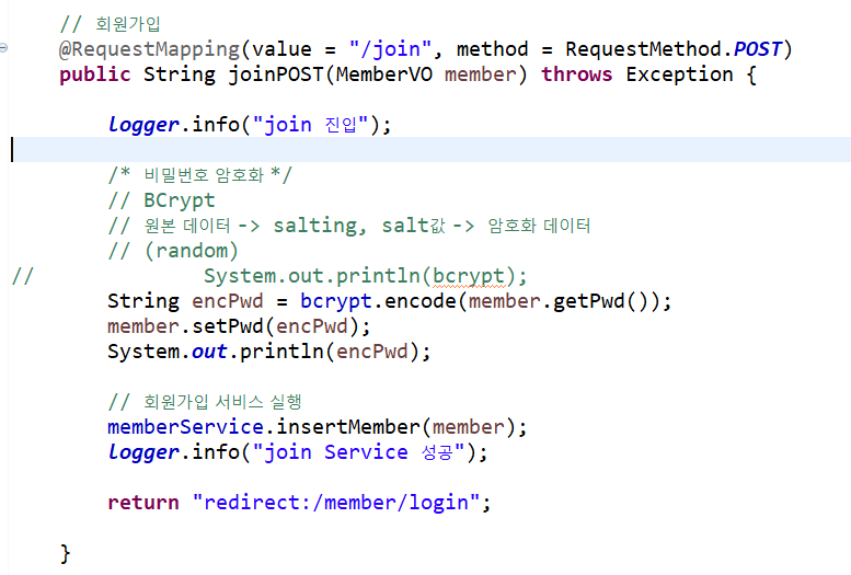 2-1. 회원가입 메서드 필드에 bcrypt 삽입