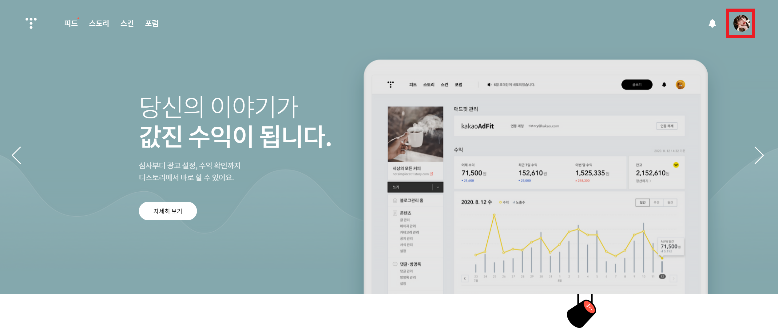 서치 어드바이저 사이트 창은 그대로 두고 새 창을 열어 Tistory에 로그인합니다.
