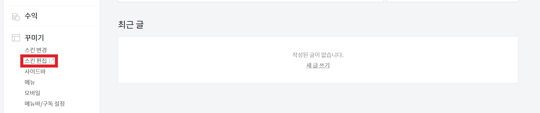 블로그 관리 페이지에 접속해서 하단으로 스크롤합니다.