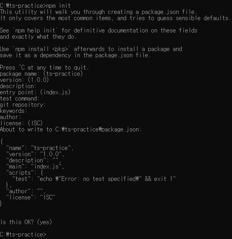 이제 TypeScript를 구동할 기본적인 준비가 끝났습니다:)