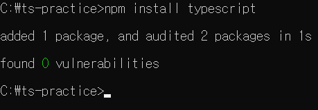 cmd 창에서 아래의 명령어를 실행하여 typescript를 node에서 실행시킬 수 있는 런타임을 설치합니다.