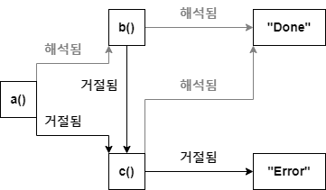 .catch(e => c()) // b는 에러가 아니므로 a가 에러일 때 호출됨