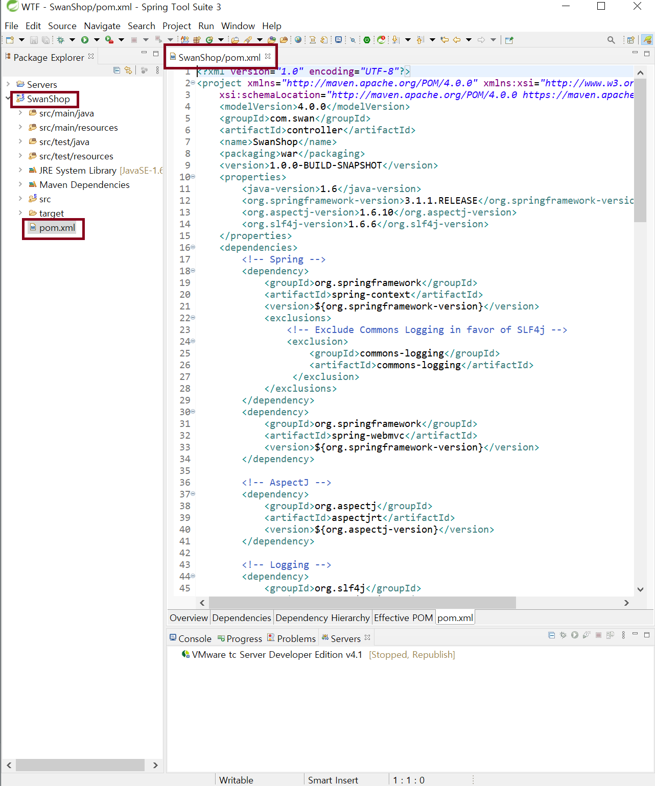 추가 및 변경이 완료되었다면 pom.xml 파일을 저장합니다(Ctrl+s).