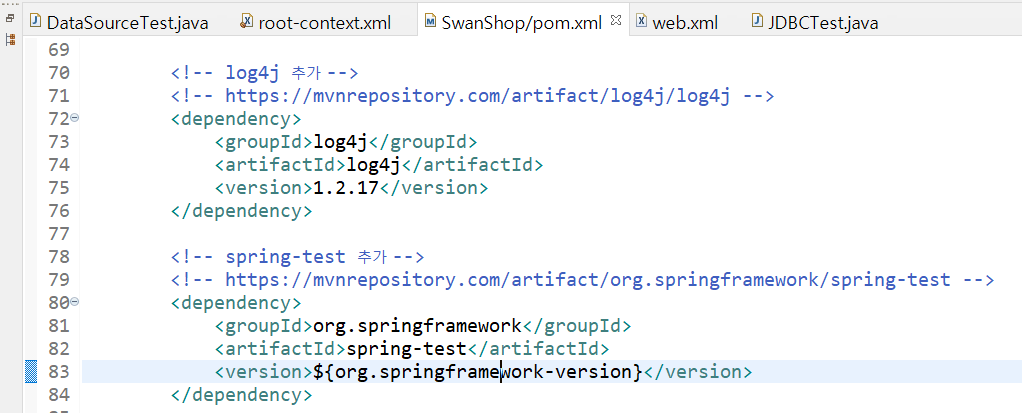 - spring-jdbc, spring-tx: 스프링에서 데이터베이스 처리와 트랜잭션 처리를 하는 라이브러리