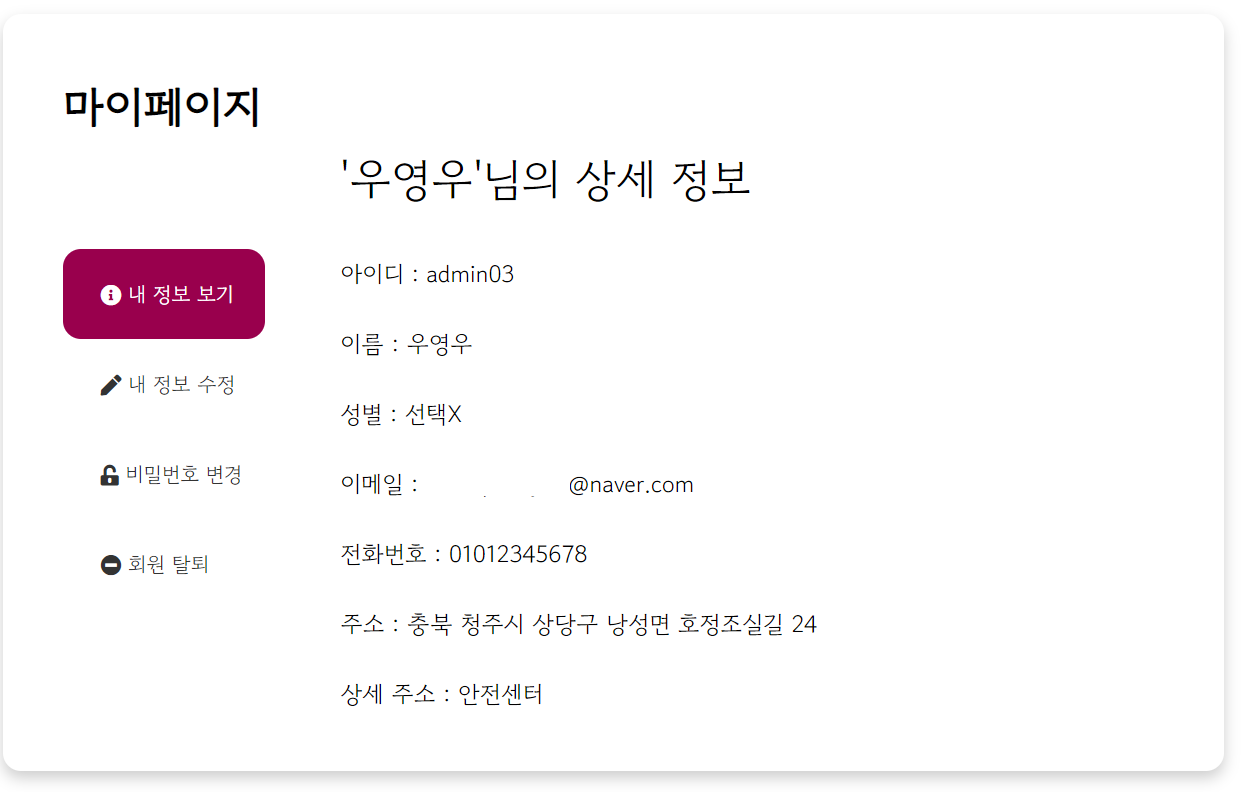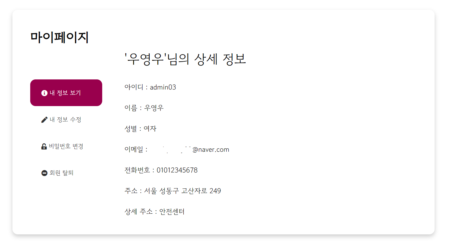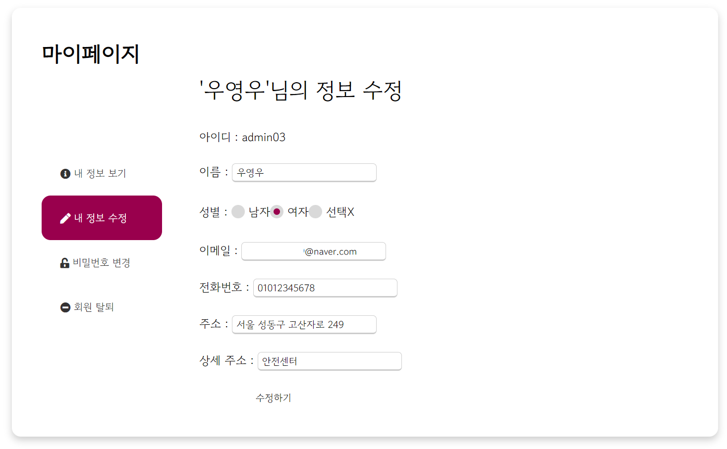STS3 쇼핑몰 프로젝트[13] 마이페이지 내 정보 보기, 내 정보 수정