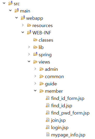 src/main/webapp/WEB-INF/views/member 아래 마이페이지 폼인 mypage_info.jsp를 생성합니다.