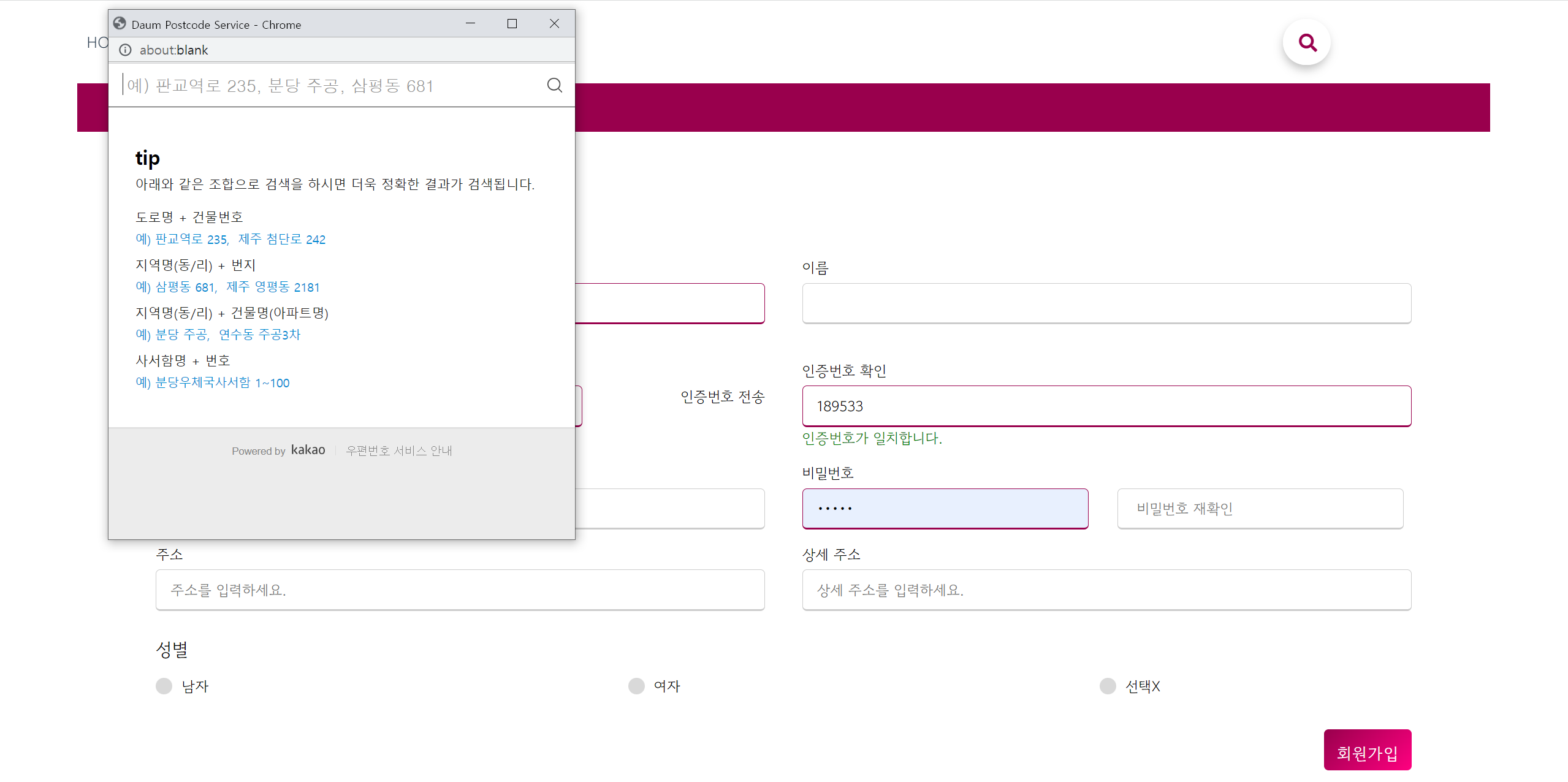 3. 다음 주소 팝업창 코드 추가