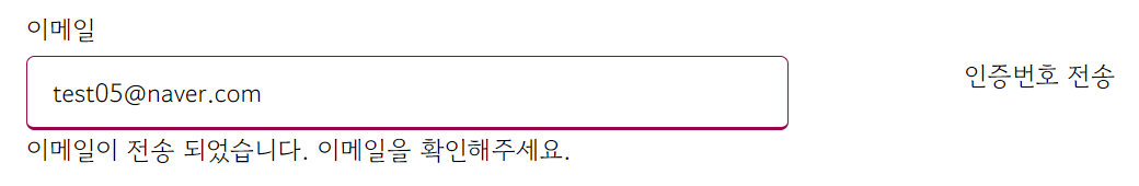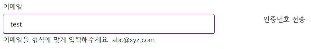 이메일을 작성하고 인증번호 전송 버튼을 눌렀을 때 이메일 형식 검사를 진행하도록 만들었습니다.
